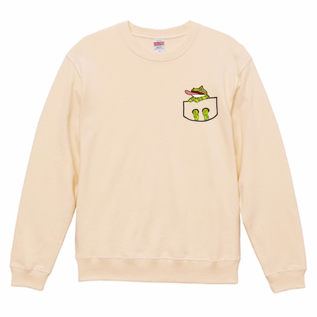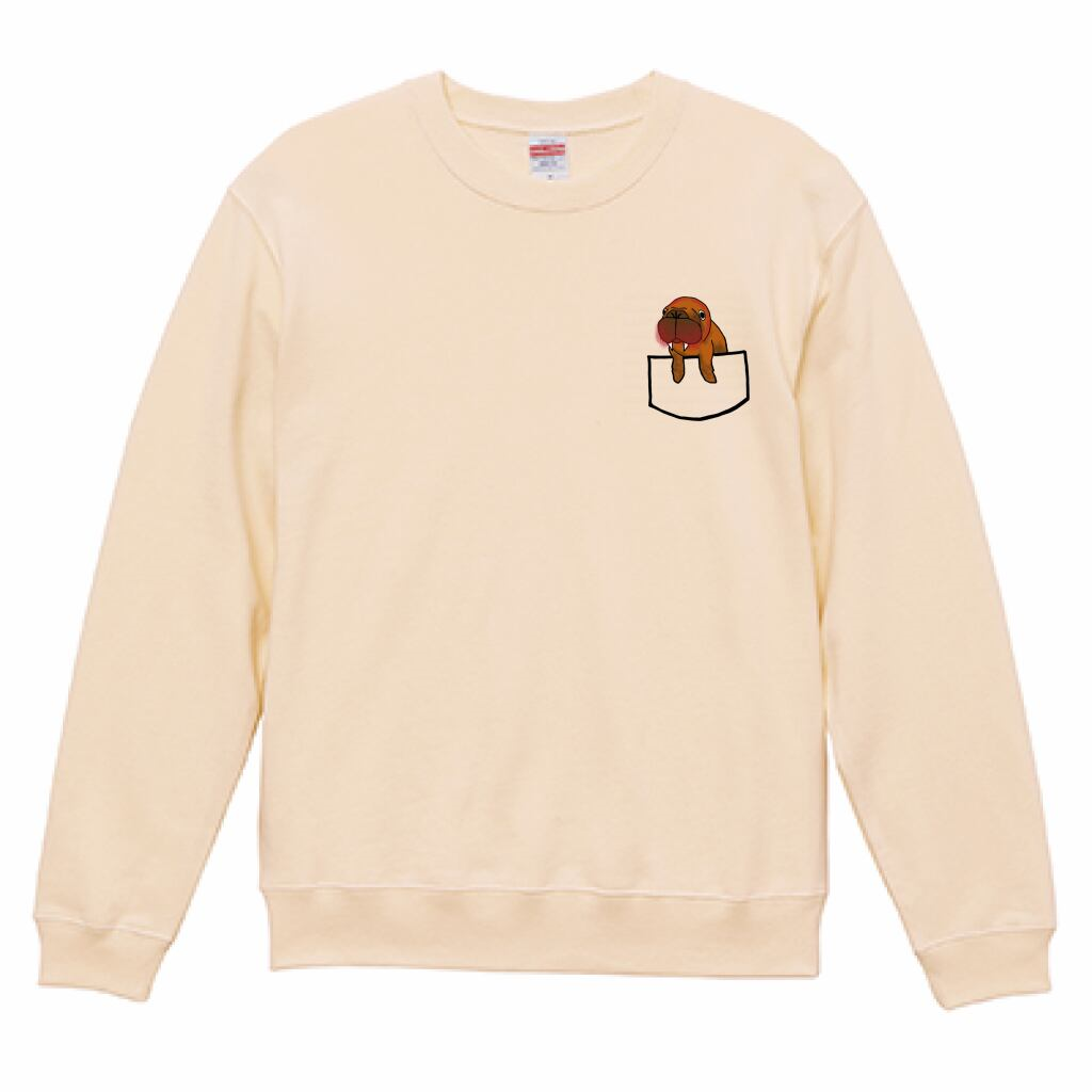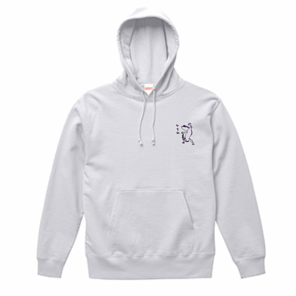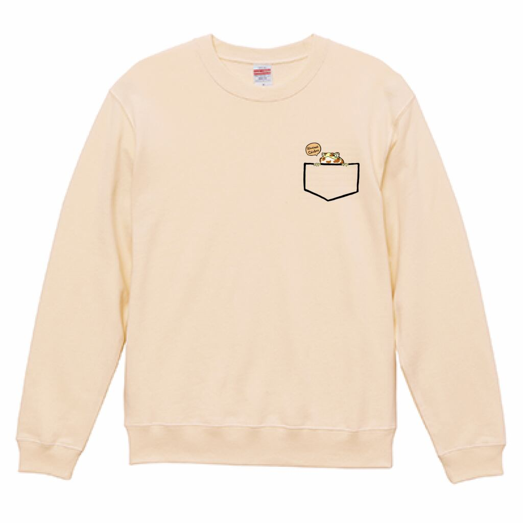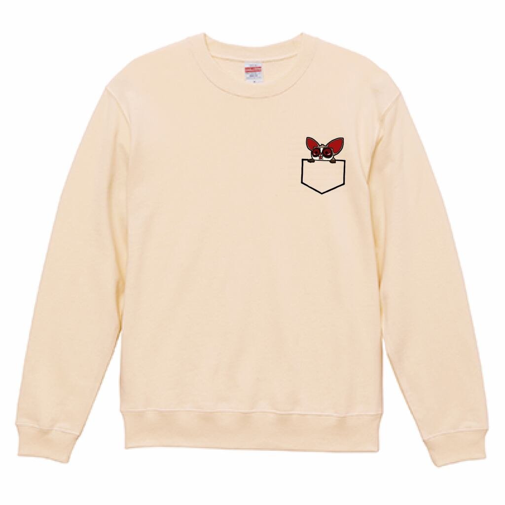 いつでもなかよしミーアとフェレットがバックプリントされ、胸にはポケットからミーアがひょっこり顔を出しているデザインがされたパーカーです。